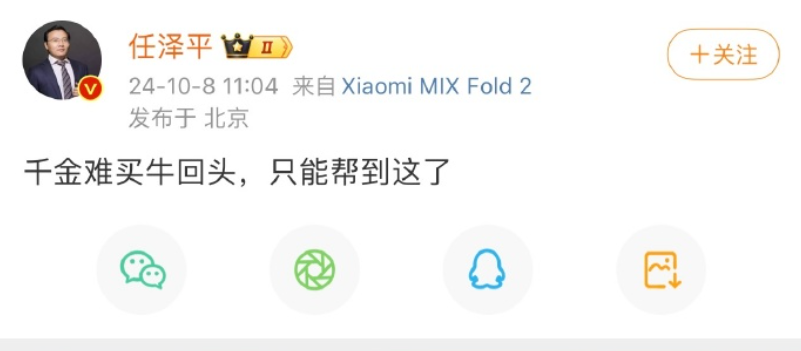 任泽平把“开盘即收盘”删了,换成了“千金难买牛回头” https://t.co/JSQNTsfAaF