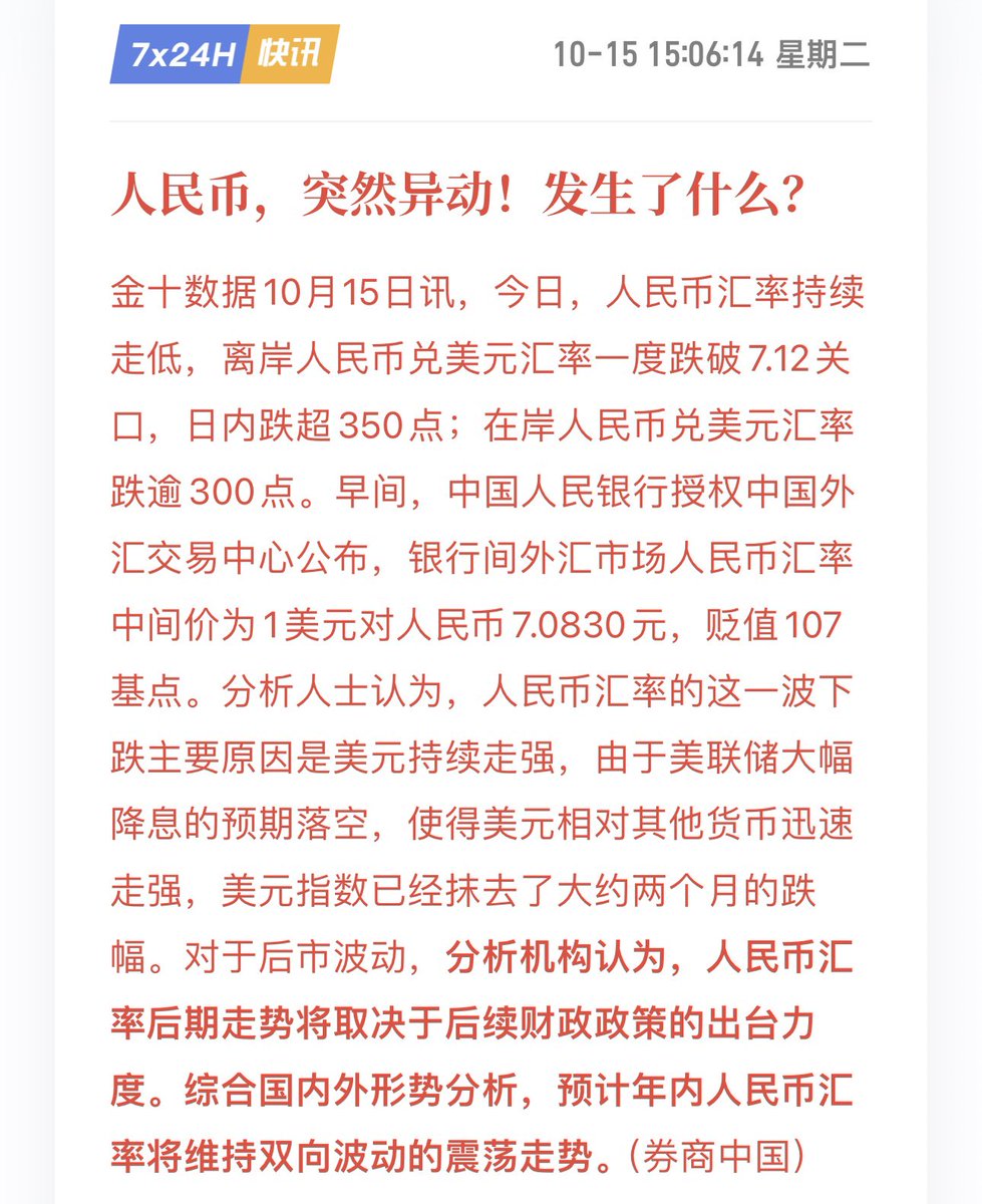 离岸人民币今天竟然突然大幅下跌,跌破7.1关口,咋回事儿,川普回归了? https://t.co/mXIdPXohrs