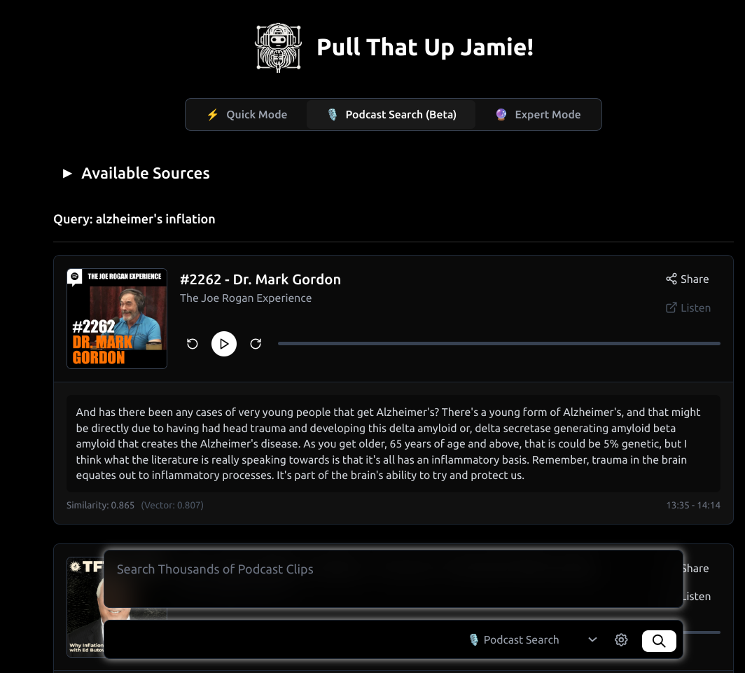 Try it now: https://pullthatupjamie.ai/?searchMode=podcast-search 🎙️