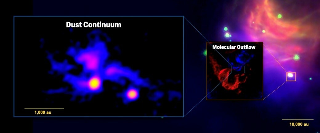 A team of astronomers searching through the Orion Nebula found one cloud containing a quadrupole-star system under formation. Newly forming quadrupole-star systems have been discovered before, but this group is much closer together less than 1,000 astronomical units. Finding objects like this will help astronomers understand the dynamics of star formation and how clouds of gas and dust fragment into smaller pockets that eventually become individual stars.
