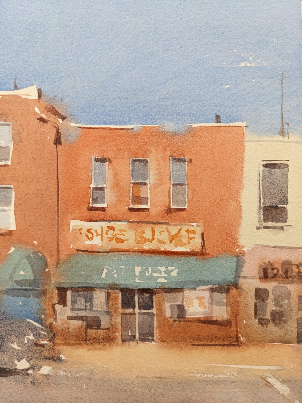 The Shoe Buckle, Hightstown. Direct Watercolor. 8"X10", 140lb Arches Cold Press.