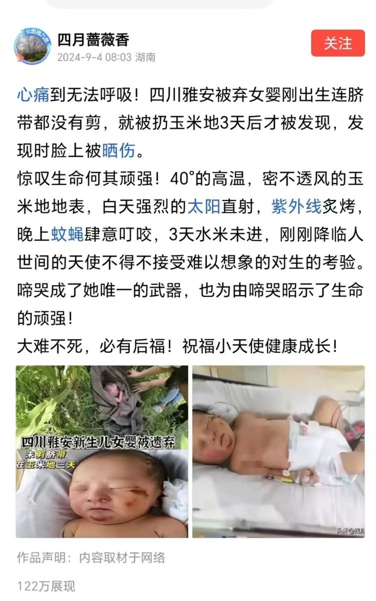中国弃婴,这种父母配为人吗?就这中共政府还不允许外国人领养弃婴,这种政府不该下台吗? https://t.co/iPqS9NfoPw
