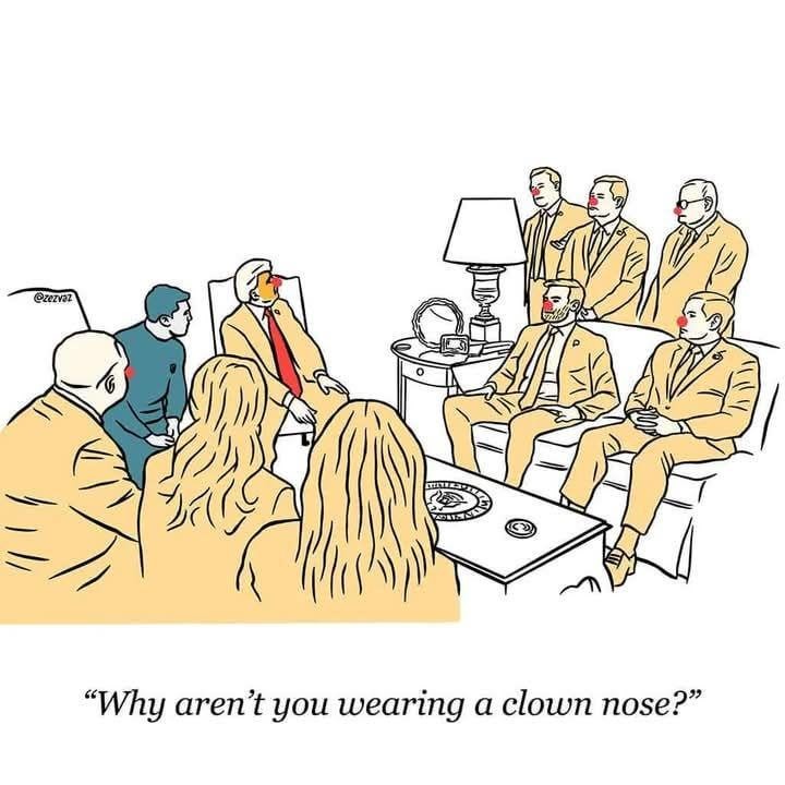 All of them are clowns but Zelensky does not wear a nose because he could not sniff cocaine with it.