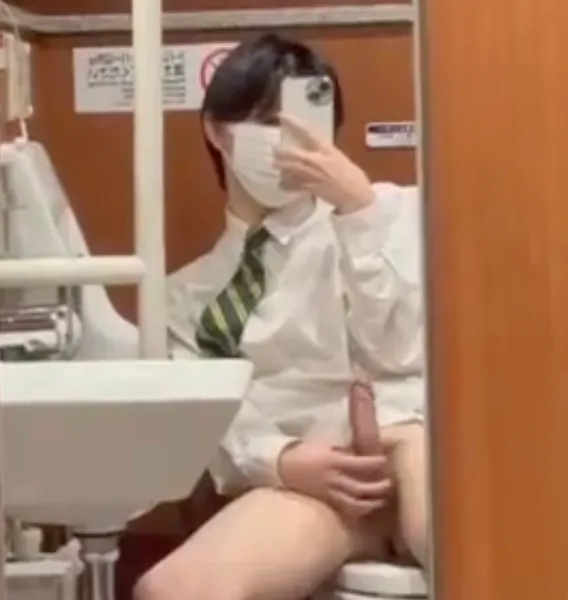 若い男の子が個室トイレでオナニーして射精するシーンを上から観察しよう!(5分11秒)