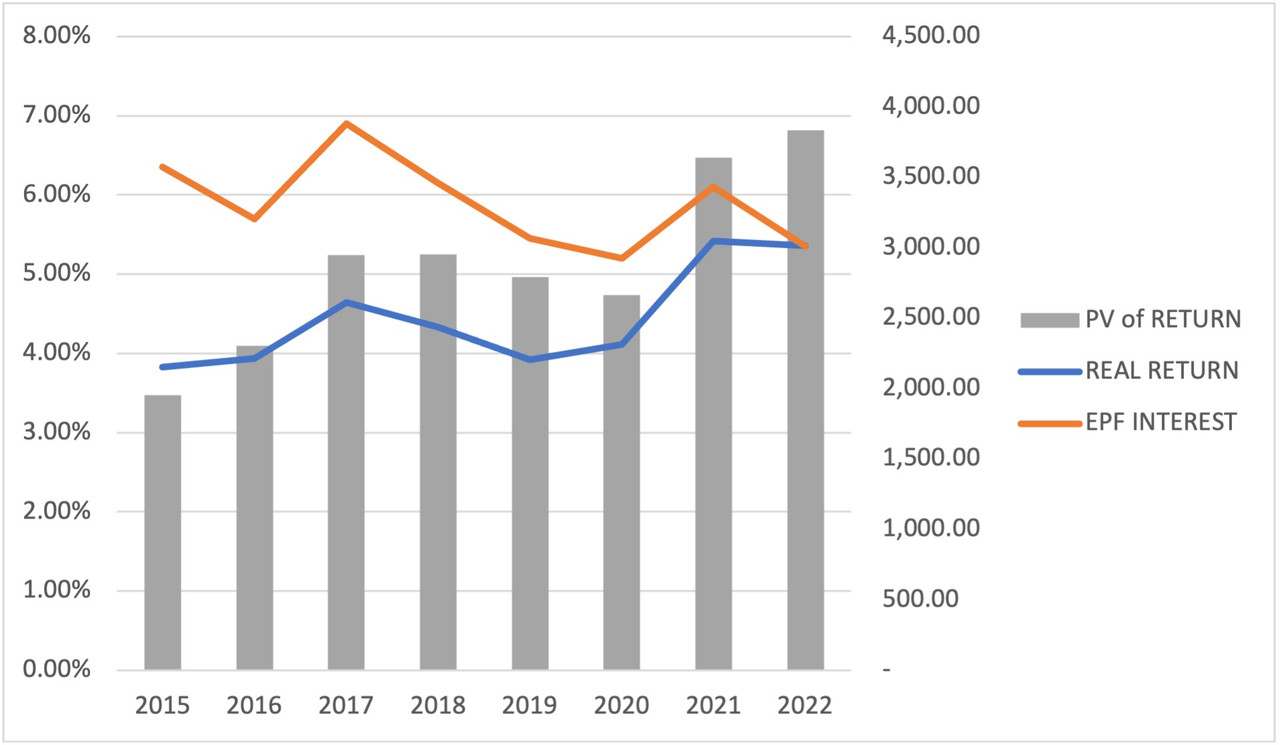 From 2015 to 2022, the real return on EPF is 4.5% p.a. after adjusted for inflation.