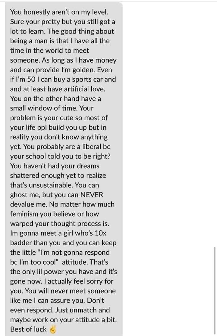 Found elsewhere online. Why do incels feel the need to do this insane cosplay on social media? Does it really make them feel better? So cringe...