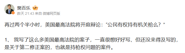 1、 我写了这么多美国最高法院的案子,一直很想好好写、但还没来得及写的,是关于第二修正案的,也就是持枪权问题的案件。