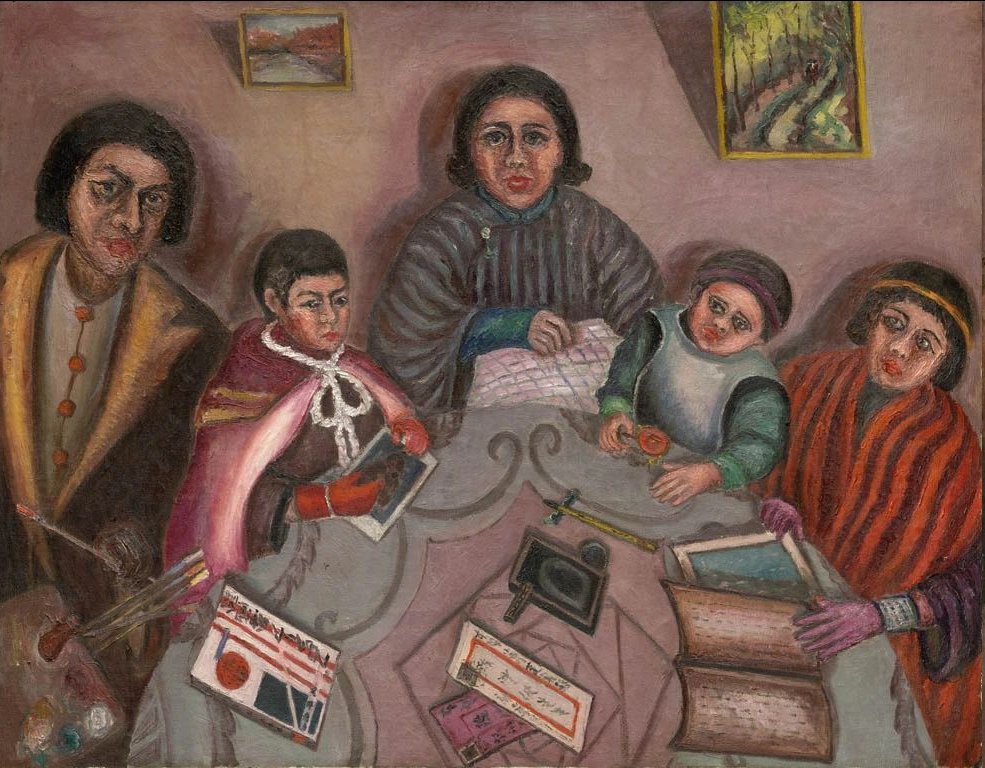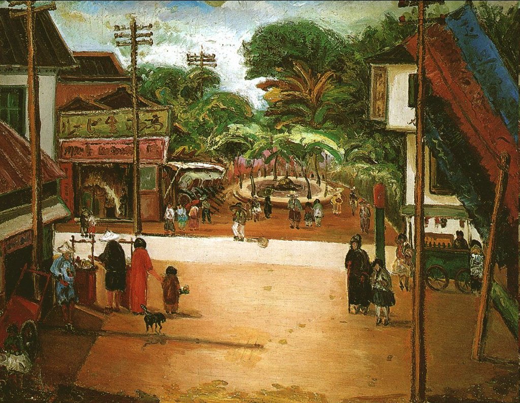 分享陳澄波畫作:淡水夕照、嘉義街外、我的家庭、自畫像。