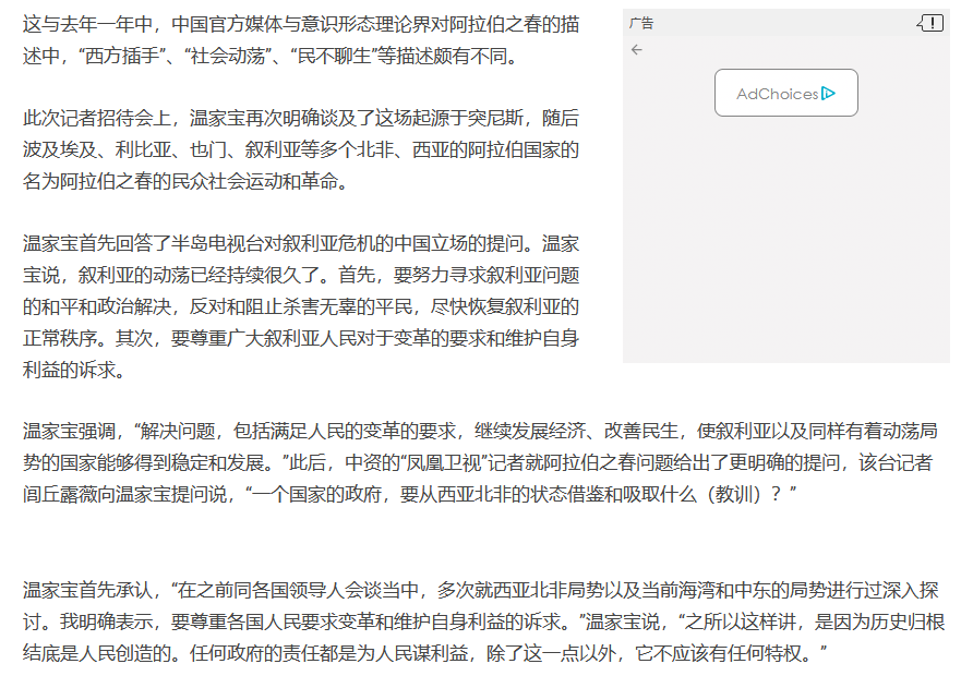 十年前(2012),阿拉伯之春,也是一个年轻的小贩抗议政府暴政自焚身亡。温家宝评价道:“尊重地区国家和人民追求变革的愿望、诉求” “任何动荡都有其内因和外因,但我以为,内因还是主要的。对于一个负责任的政府来说,就是要坚定、勇敢地担当起责任,而且不谋私利。”图2