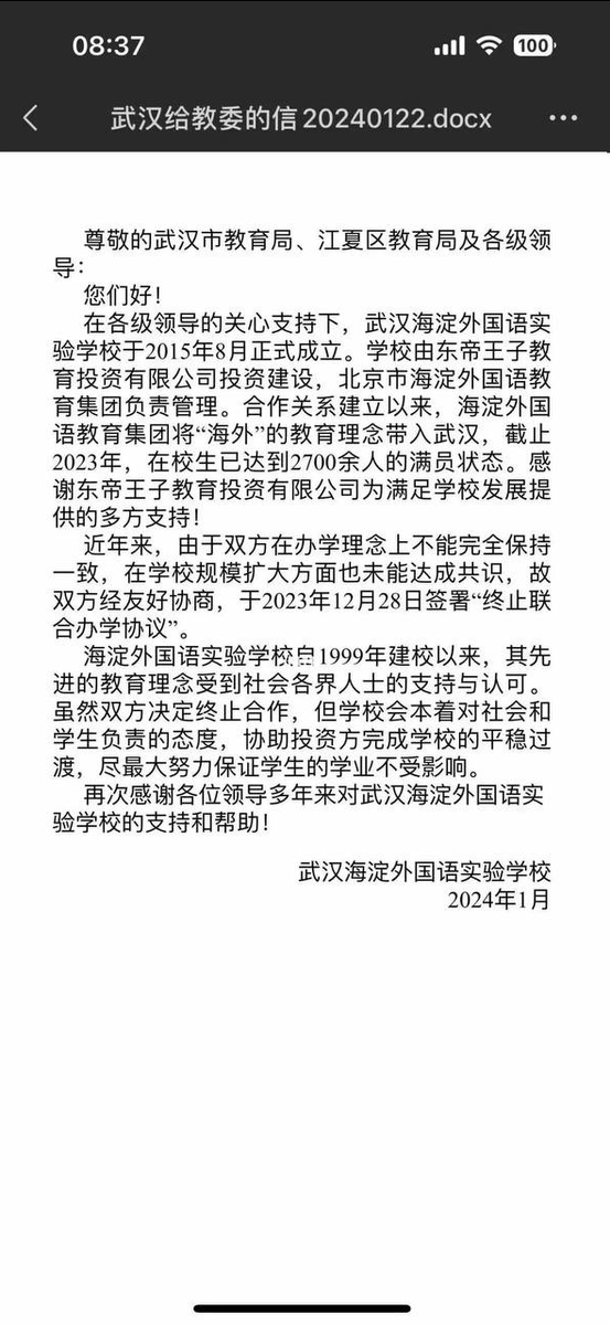 武汉海淀外国语实验学校和海淀教育集团23年12月解除合作隐瞒信息继续招生,收取24年学费后改名为武汉海外学校😂 https://t.co/bcxtqkbJcT