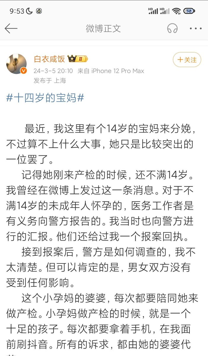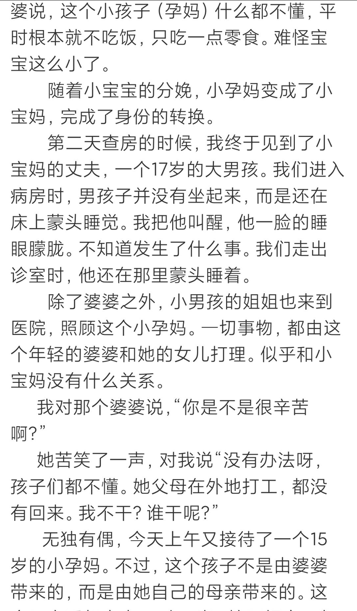 一个妇产科男医生,面对14岁/15岁的低龄产妇,脑子里想的居然是,08年的孩子都当妈了,你们也赶紧的吧。