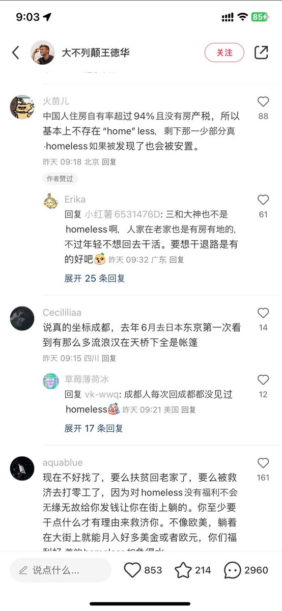 转:小红书一个英国人问大家为啥他在中国旅游时没见过homeless,事实上这个问题每隔一段时间就有老外问,但因时代不同面向的中国群体引发的回应也略有差异,我记得上次讨论这个问题大家多少还进行了深刻的反思和略有揭露,因为中国的事实完全和看到的不同。