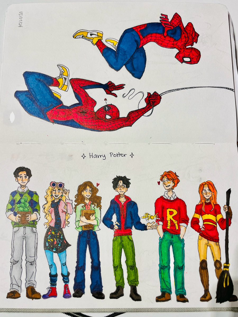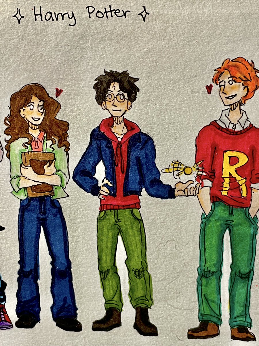 整个春假,孩子们都在追剧《哈利波特》系列,追到第五部了。。。女儿还意犹未尽地手绘了剧中的卡通版人物。