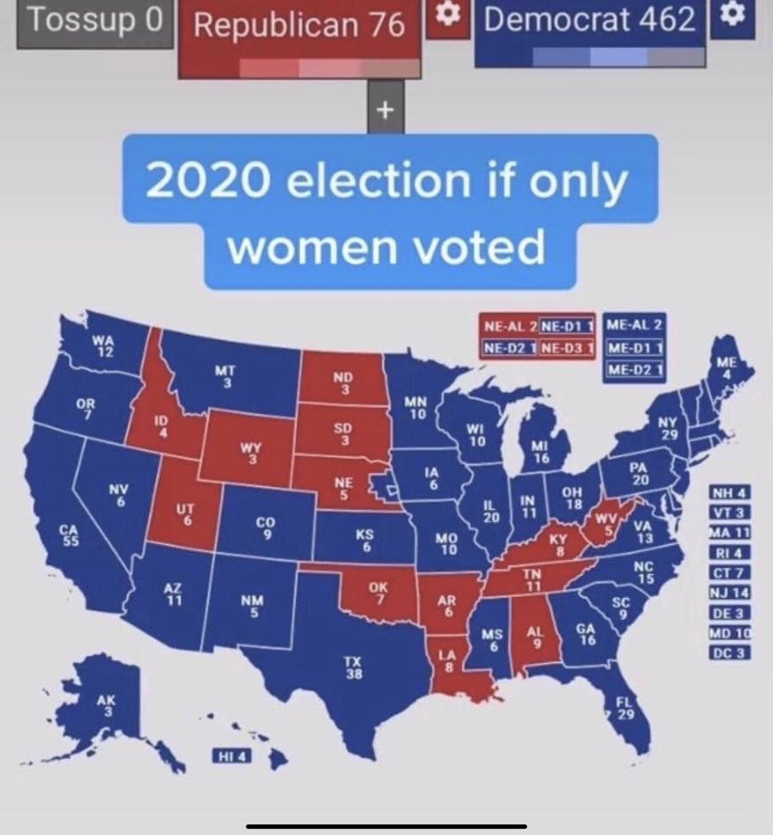 如果美国大选投票的“只有”女性,那么大选结果会是这样的!