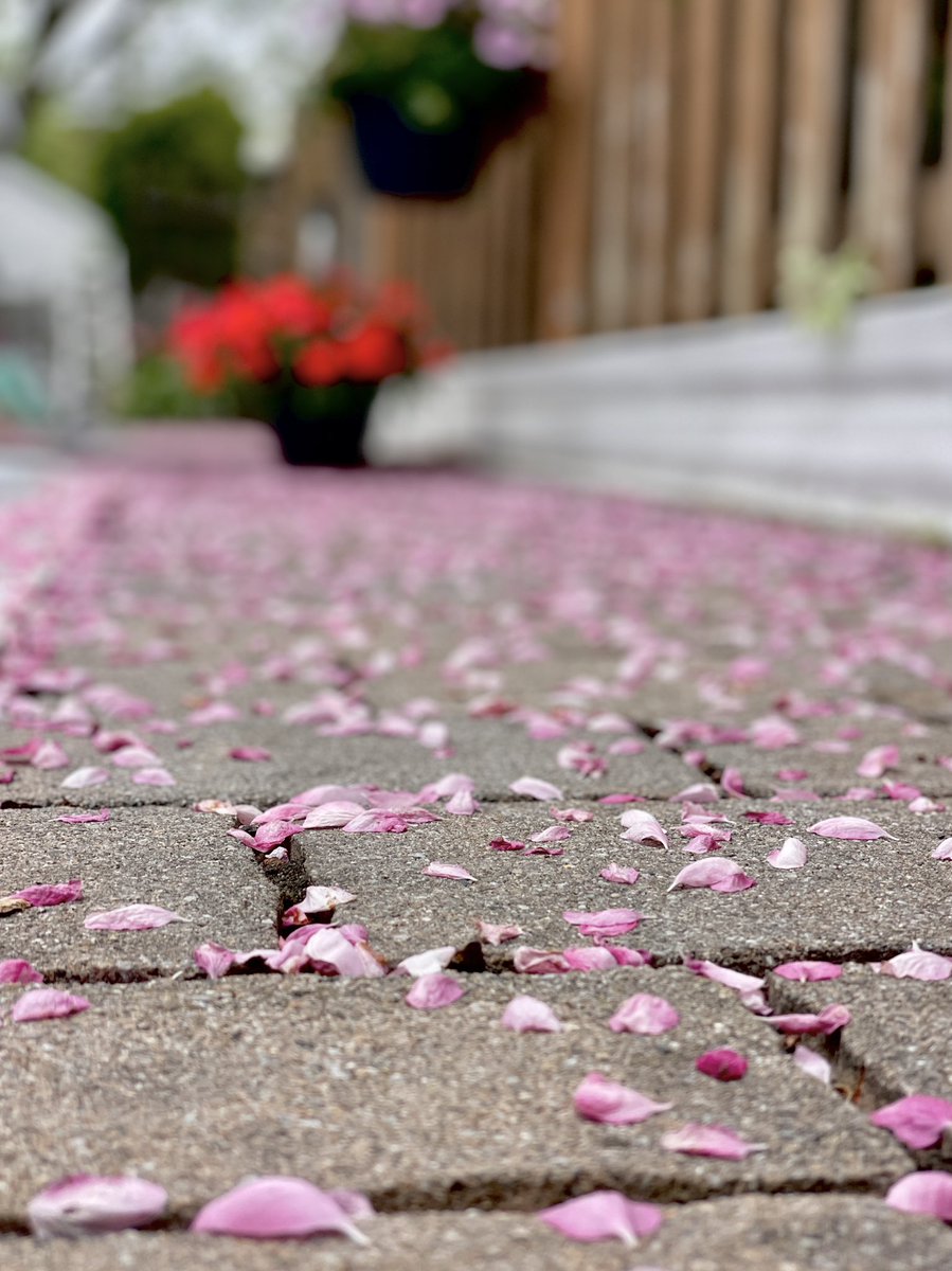 覆盖了一条花径,更飘零在水上把泳池的Skimmer都堵住了。虽然给我造成了一点小忙乱,但颜值高就是可以任性啊……