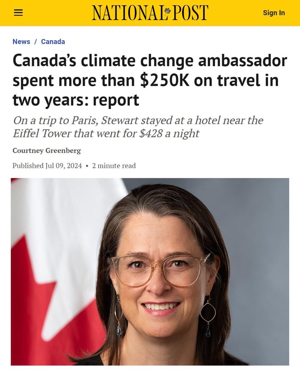 媒体曝光:加拿大的“气候变化大使”两年来挥霍无度花光纳税人$25万加元,去趟巴黎就入住埃菲尔铁塔附近的豪华酒店。。。😂 https://t.co/MDROhhLsDF