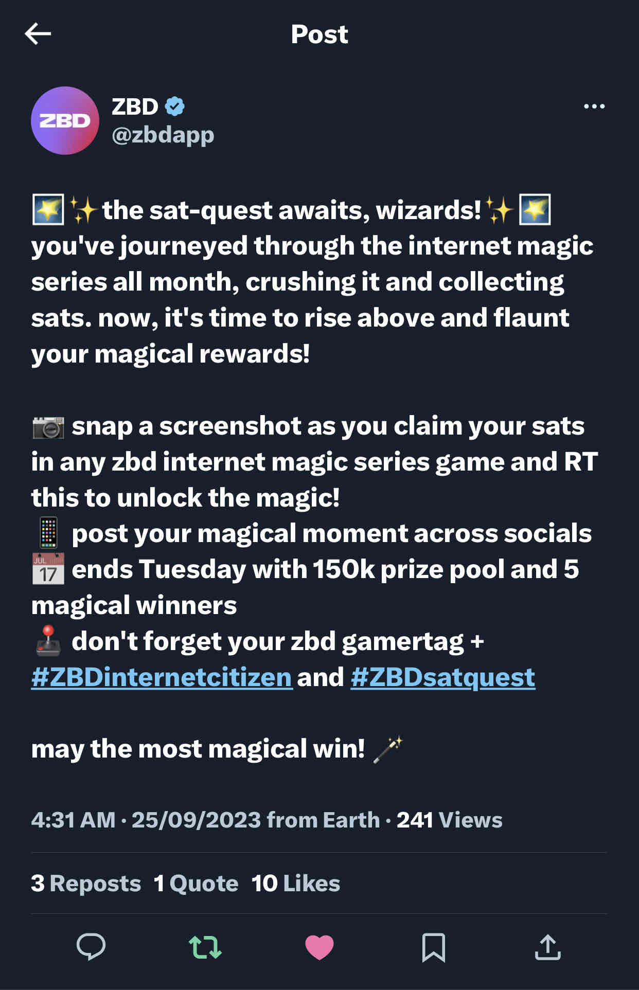 ๐น๏ธ don't forget your zbd gamertag + #ZBDinternetcitizen and #ZBDsatquest