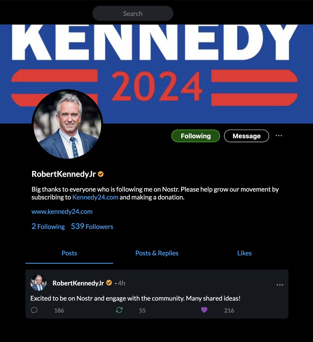 @RobertKennedyJr Can you confirm this is your profile on Nostr? https://t.co/WgzrwOWGC4