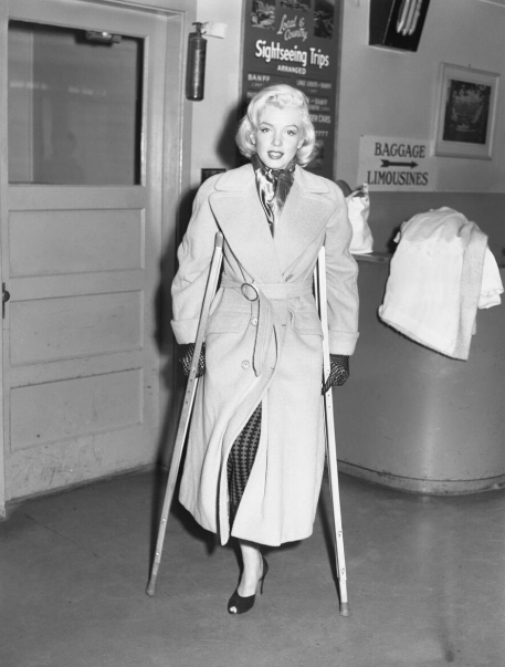 Marilyn Monroe at a train station in Jasper on Aug. 31, 1953. She was in Jasper filming River of No Return, where she injured her ankle and was kept off set for several days.