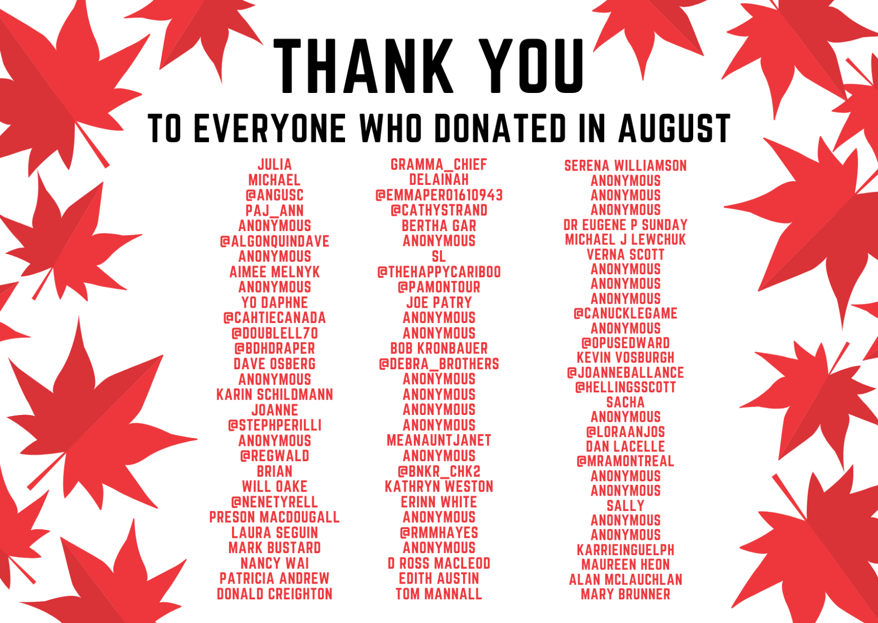 Thank you to everyone who donated to Canadian History Ehx in the month of August