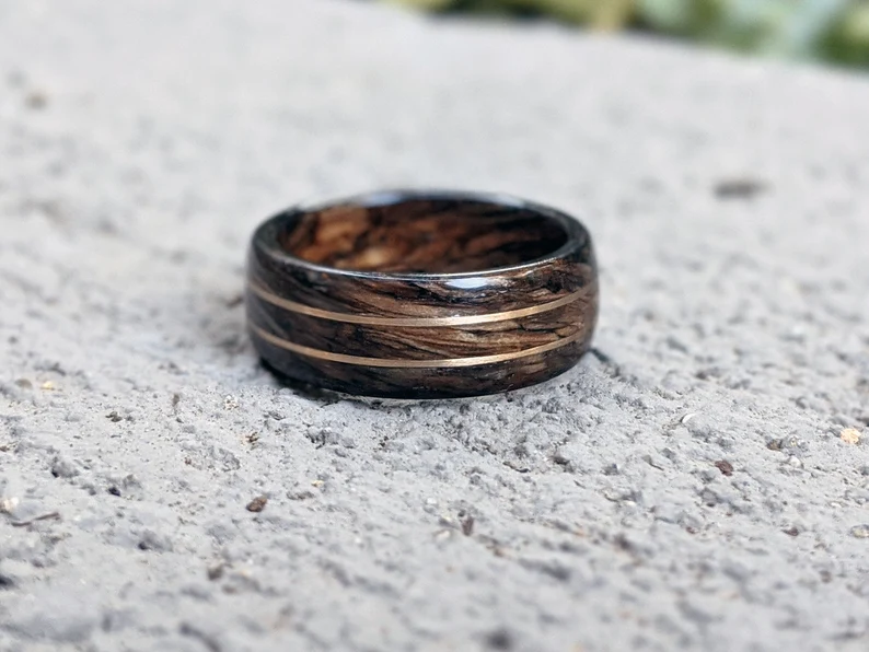 nostr:npub1x6h5saz5yyk9eq2lqnmu4zlrumnca5c4f00eetvqhnd5ms9f779qqrc3yv rate my wedding ring cream queen (its made from a jameson barrel with gold inlay)