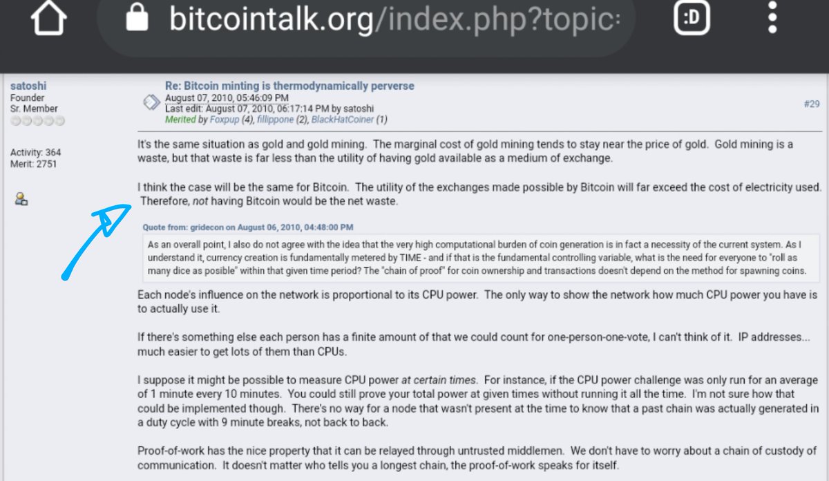 Todo sobre energía y bitcoin se reduce a si BTC es útil o no. Si no, ni empezaríamos a tener esta conversación. Si no te parece útil, desperdicia, ergo, contamina. Es todo. Una vez que veas a BTC como dinero duro resistente a la censura, tal vez quieras seguir con el micro hilo:
