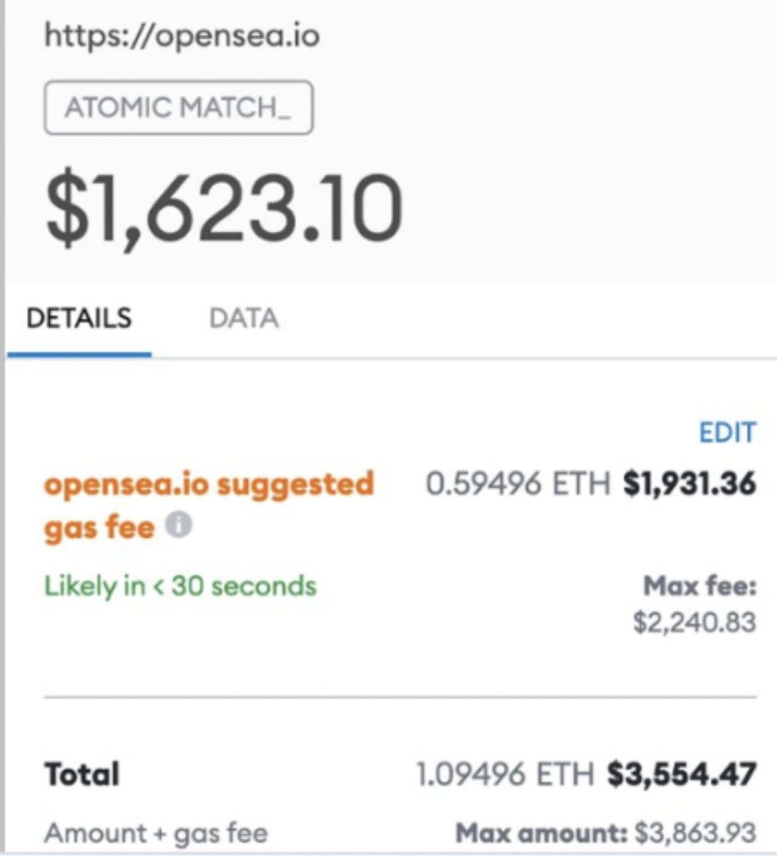 Mientras que Vitalik se burlaba de los cinco centavos de fee en Bitcoin... Interactuar con Uniswap ya vale $400 e interactuar con opensea para vender mis NFT rocas ya supera los mil dólares. Felicidades por esto Ethereum. En serio.