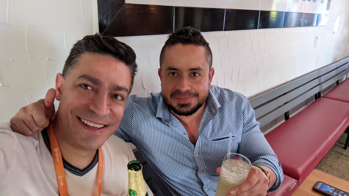 Con el gran @juanbiter (quién sabe qué trago se le había antojado, veo mucha fruta ahí)