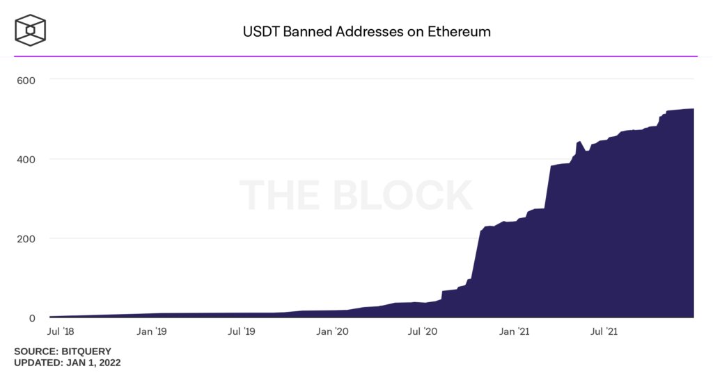 Gráfica:direcciones con USDT congeladas en Ethereum