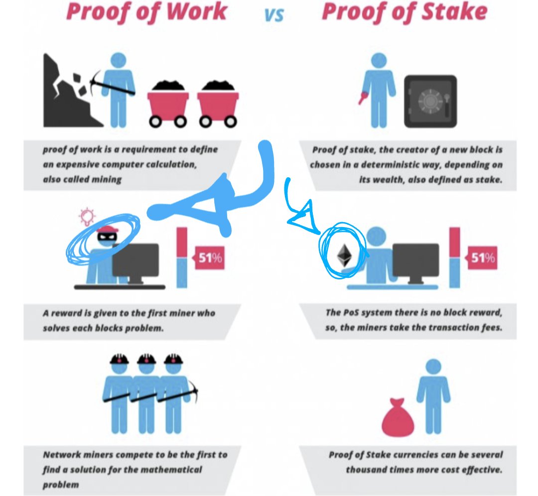Aquí el WEF menciona que el proof of stake es mejor que el proof of work (incluso, a la izquierda, dibujan a un minero como ladrón con antifaz... Y mira qué tiene en la mano el minero "bueno" a la derecha). La directora del Ethereum Foundation, es miembro del World Economic Forum https://t.co/hmeGaX66rk