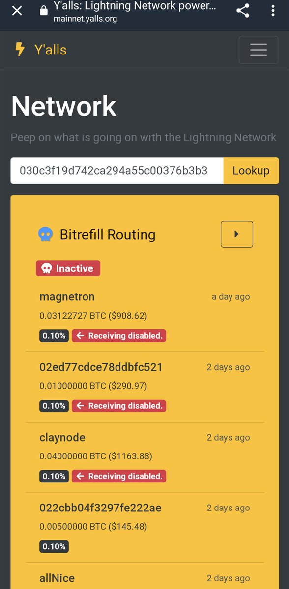 Bitrefill Routing inactive. Fuente https://t.co/Q1GXvpocxb