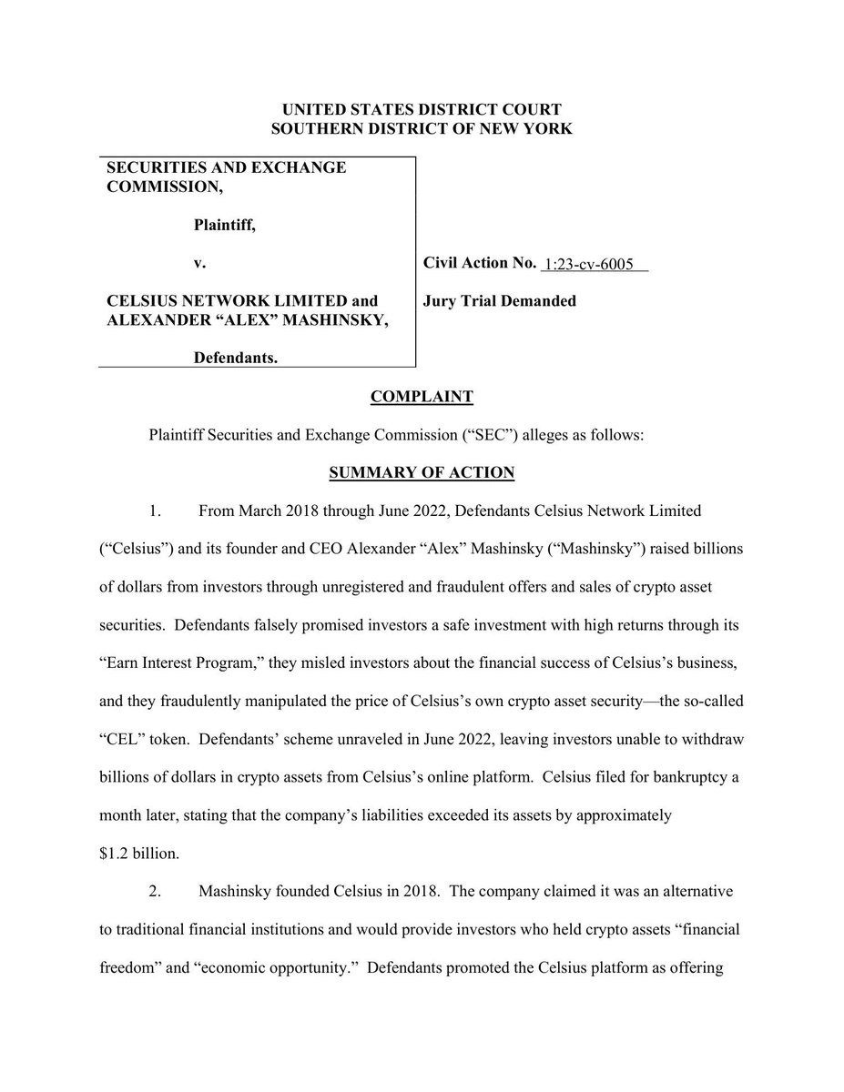 SEC, DOJ, CFTC, y FTC demandaron y levantaron cargos a Celsius y Mashinsky en la última hora.