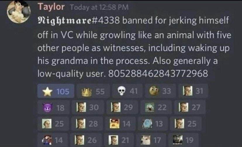 This is up there with "please don't give birth in VC" as one of the most cursed discord announcements I have ever seen.