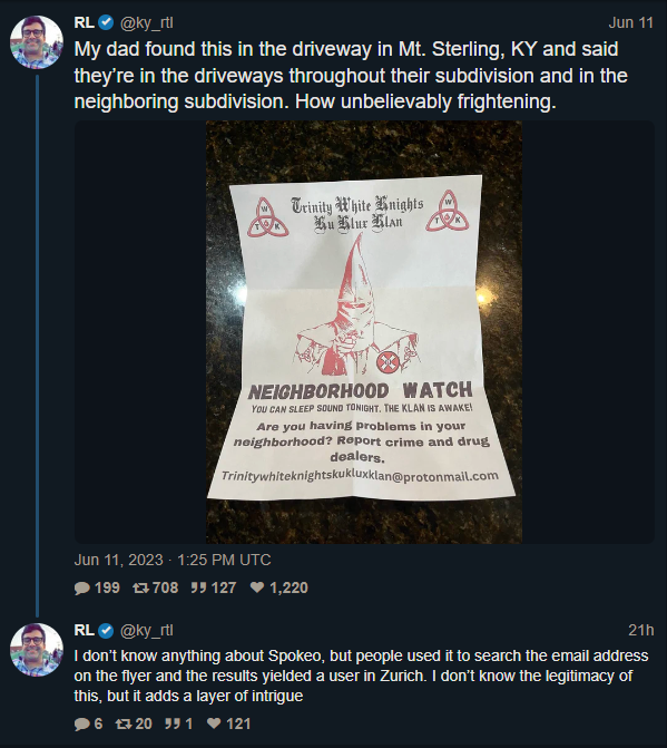 I seriously don't understand what compels these people to put such little effort into their hate hoaxes, I mean really the KKK? I've lived in the south my entire life and have never seen nor heard of any active Klansmen ever. It's a dead organization relegated to weird stores in the middle of nowhere, this flyer would be a less obvious attempt to go viral if it just had a swastika on it.