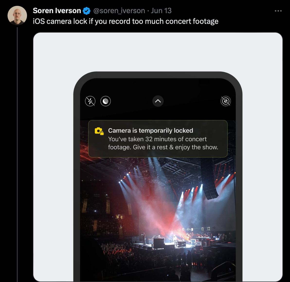 iPhones now lock your camera if you take too much footage at a concert, I'm sure this tech won't be abused in the future to hide anything nefarious or embarrassing for the system or anyone else.