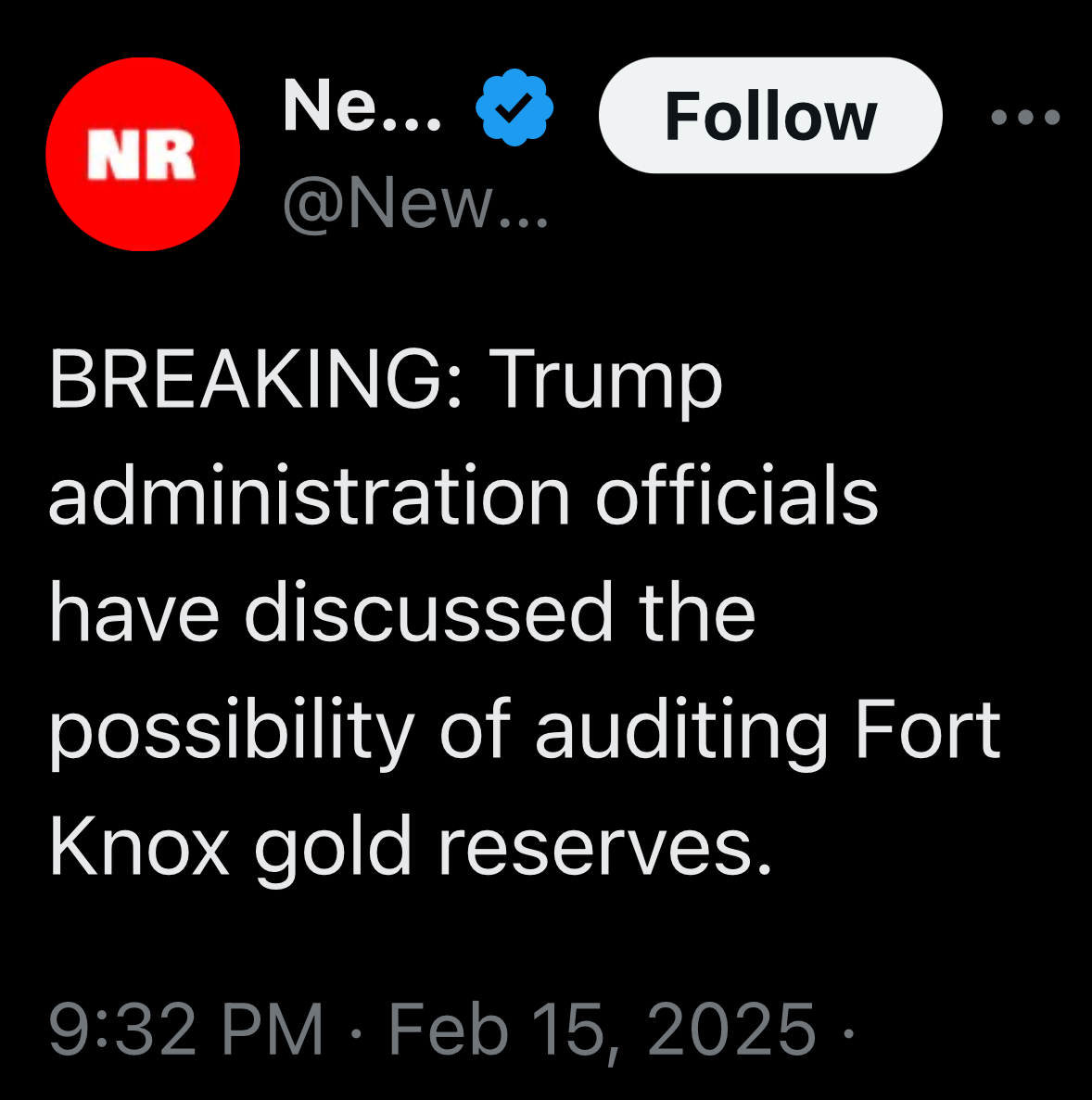 He should also take a look at the gold holdings in Fort Knox.