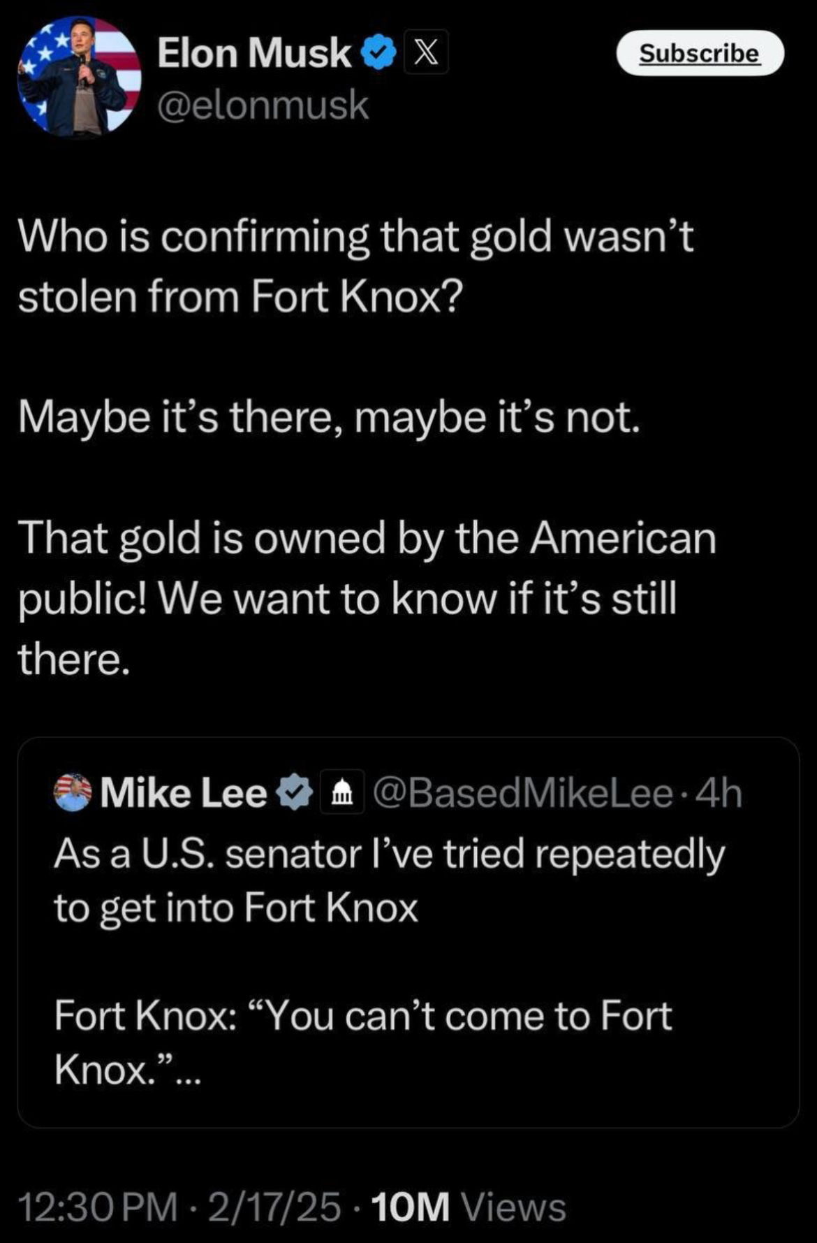 BREAKING VIDEO: Sen. Rand Paul Has Announced That Elon Musk's DOGE Is Officially Investigating The Nation's Gold Stockpile At Fort Knox & Other Facilities, Sending Shockwaves Through The Already Collapsing Deep State