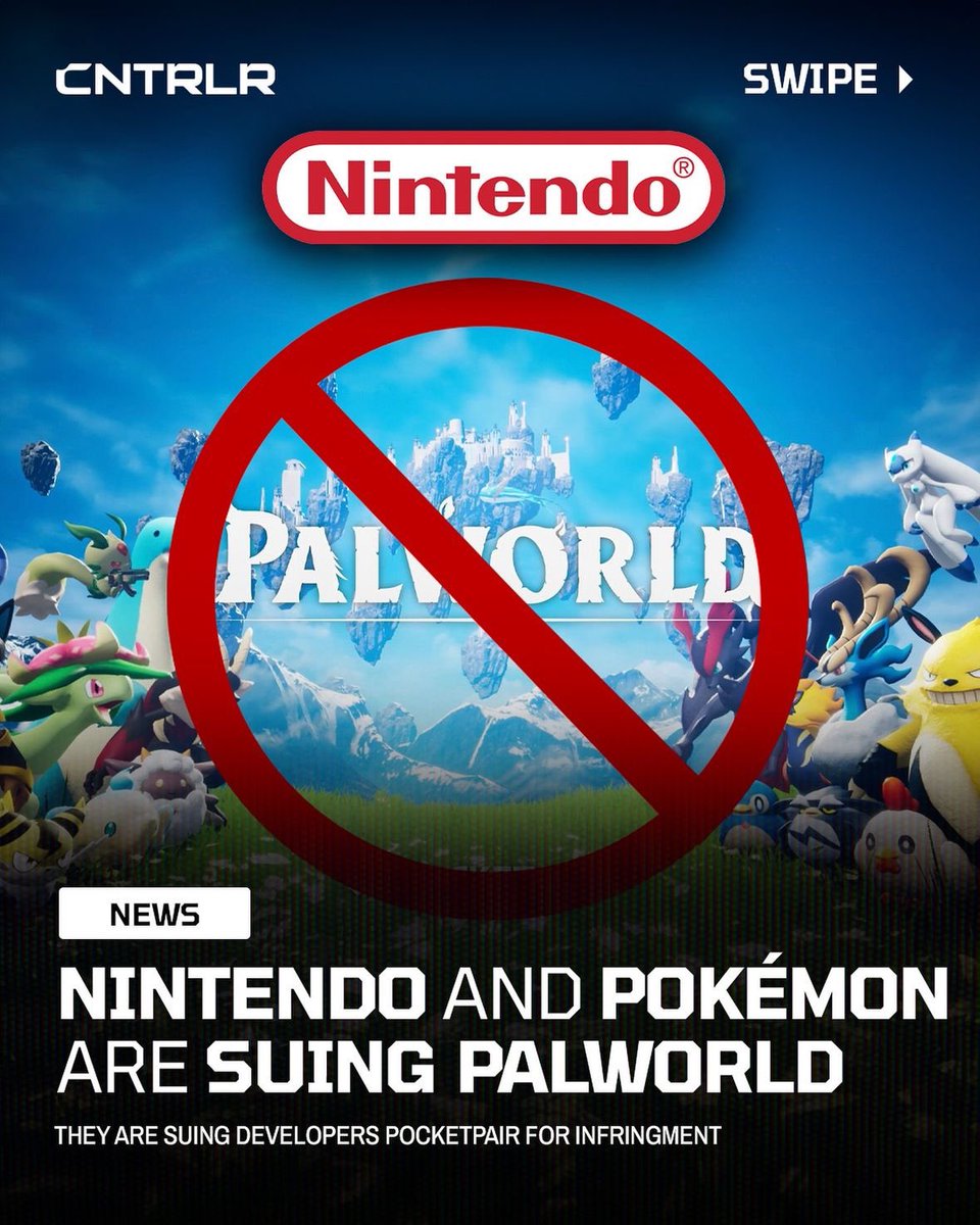 Nintendo and the Pokémon company are officially suing Palworld creators PocketPair over infringement 😳 https://t.co/9zA77r8igP