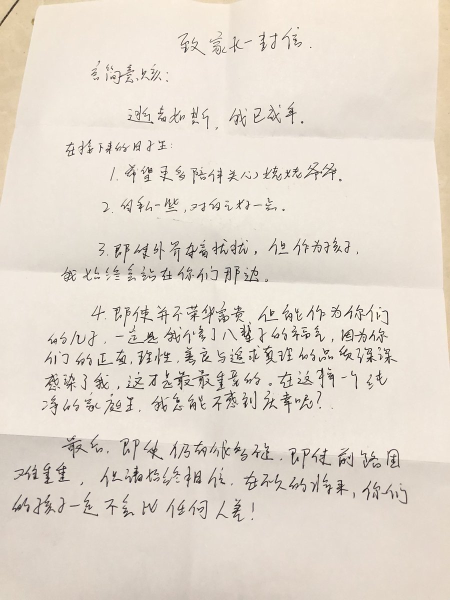 大儿子和他妈在其成人礼上的书信记忆: https://t.co/T6F4pyImbc