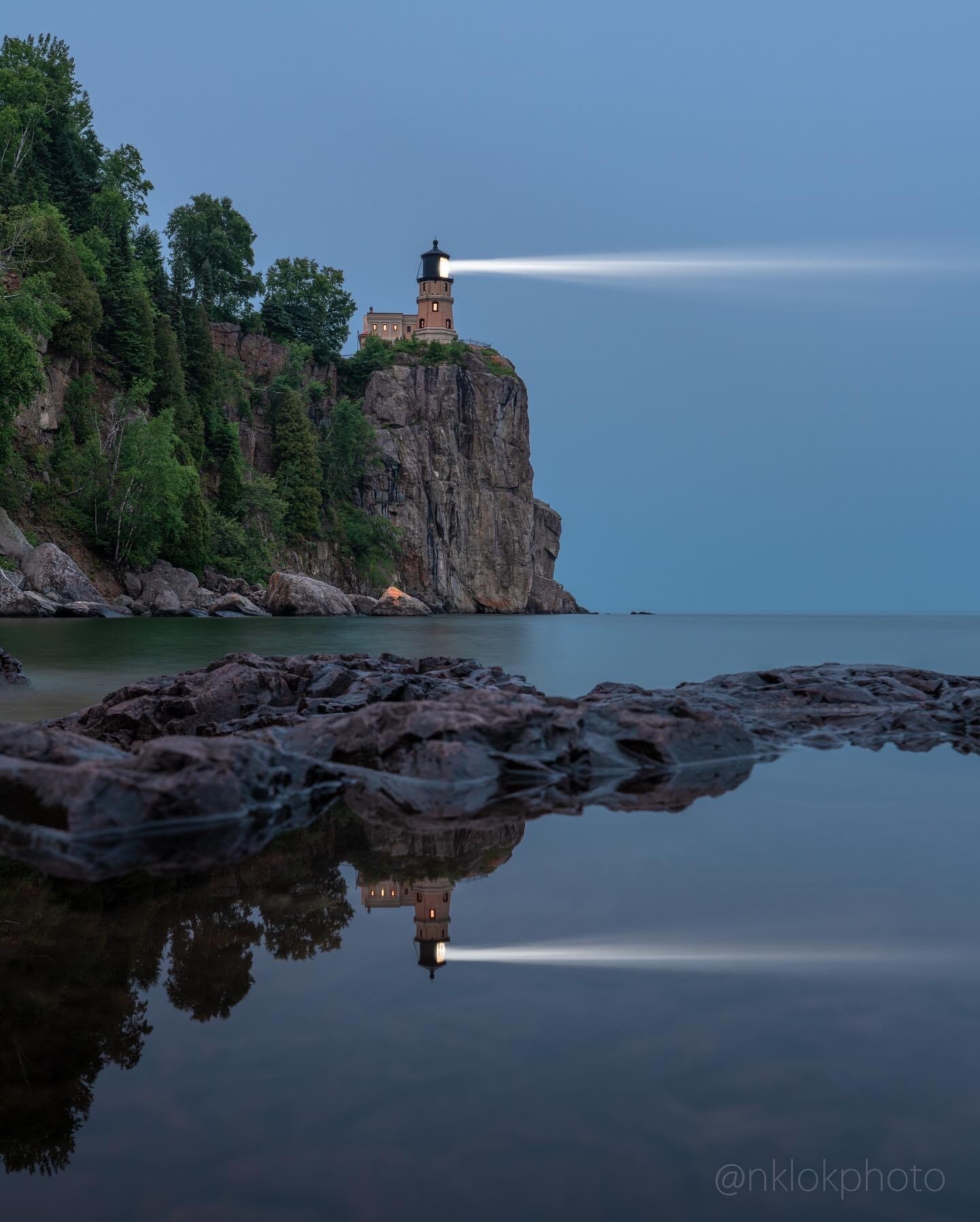 Split Rock Lighthouse in Two Harbors, Minnesota, the night of its 113th birthday, 31 July, 2023. Photo by Nathan Klok.