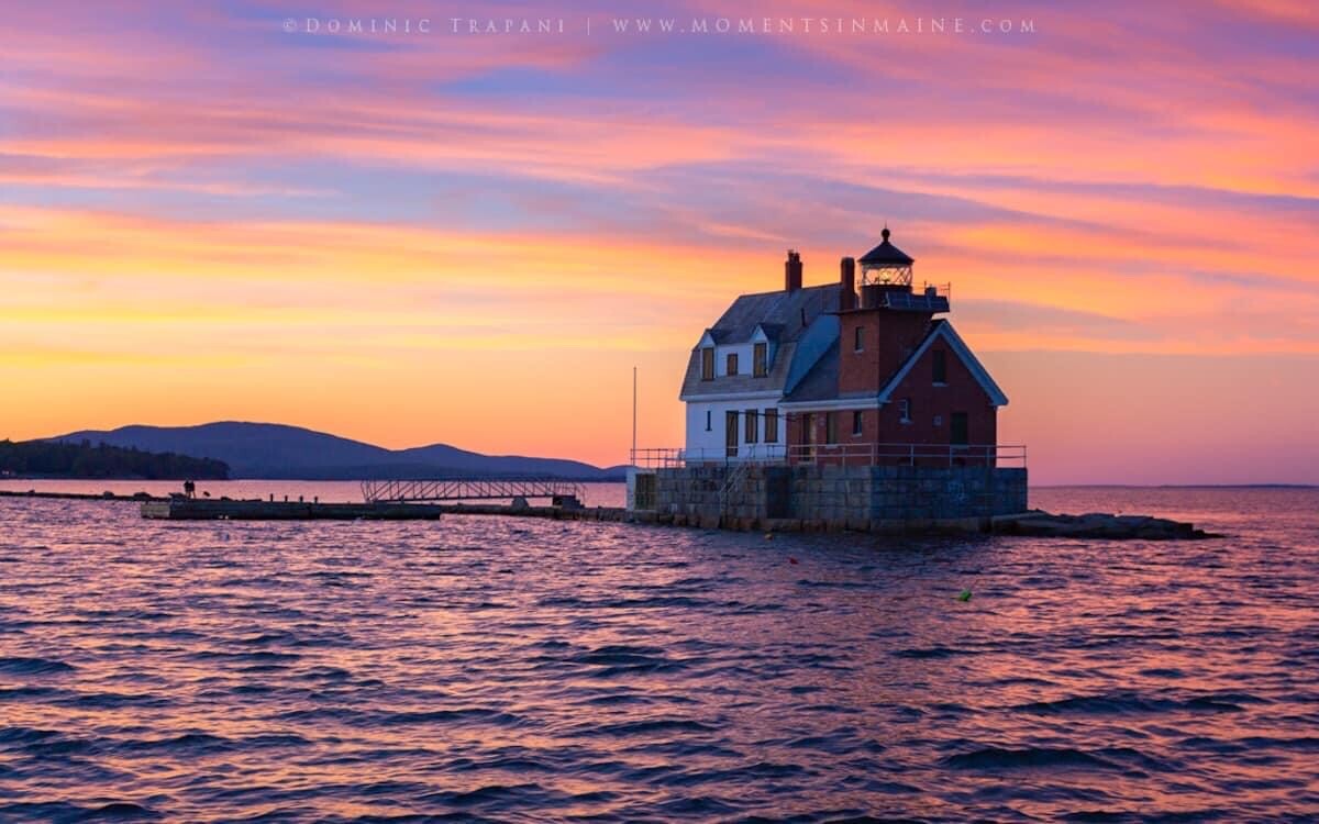 Summer sunset over the Rockland Breakwater Lighthouse in Maine. Photo by Dominic Trapani.