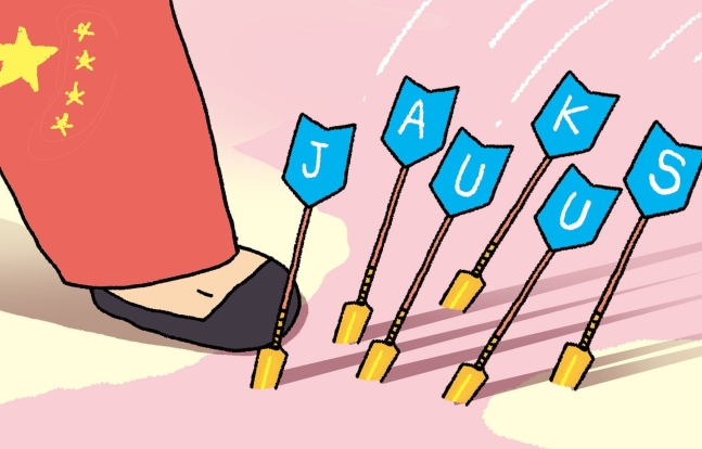 当地时间10日,美日首脑在华盛顿会晤,正推进日本加入“奥库斯”成“JAUKUS”。美国之所以这样做,是因为中国攻击台湾时能和美国一起战斗的国家只有日本。今后美国会让韩国和新西兰以某种形式参与奥库斯。现在迫切需要韩国安保当局者的智慧和能力。