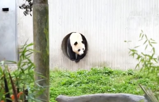 11日,4月回歸中國的大熊貓福寶終於公開亮相。當天上午9點38分,在四川省臥龍中華大熊貓苑神樹坪基地舉行“福到!福到!福寶見面會”活動,福寶打開圓形鐵門來到戶外場館。當天福寶在戶外場館探索設施,還大快朵頤竹筍蛋糕。