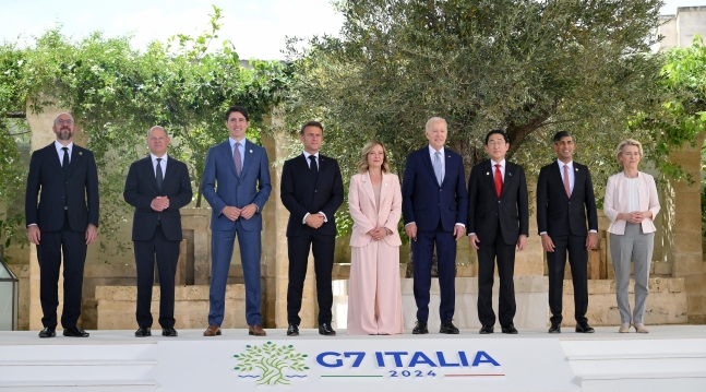 13日,自由陣營的發達國家首腦討論共同應對地球村待解決議題的七國集團首腦會議,在意大利普利亞的博爾戈·埃格納齊亞度假酒店舉行,會議為期三天。是用凍結資產產生的利息為擔保,在國際金融市場貸款500億美元給烏克蘭的方式。