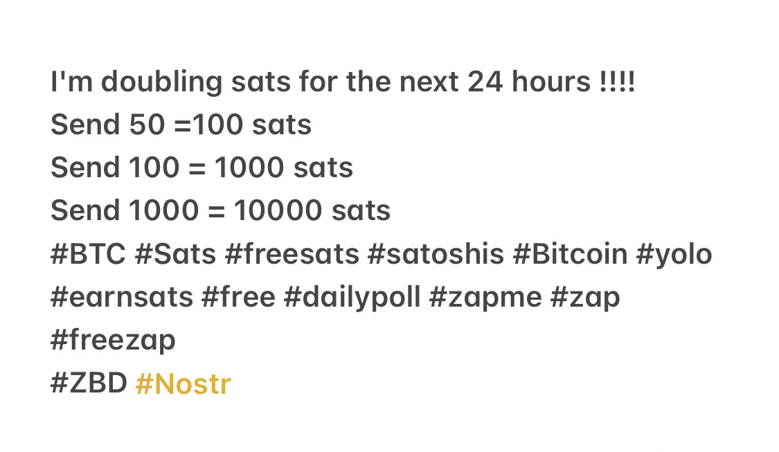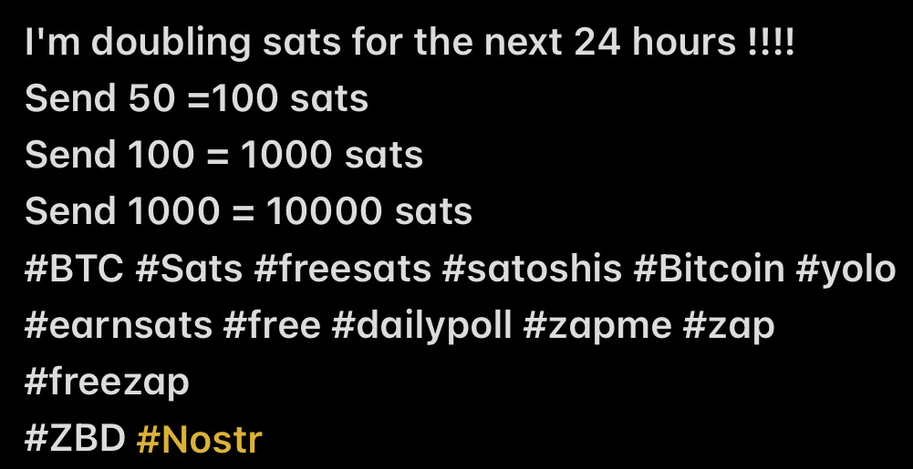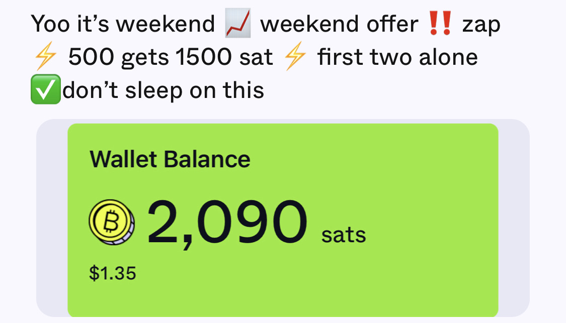 Yoo it’s weekend 📈 weekend offer ‼️ zap ⚡️ 500 gets 1500 sat ⚡️ first two alone ✅don’t sleep on this