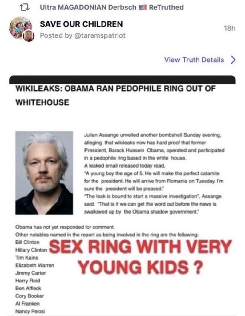 朱利安·阿桑奇的重磅爆料。他声称维基解密现在有确凿证据证明,前总统巴拉克·侯赛因·奥巴马曾在白宫经营并参与了恋童癖团伙。 https://t.co/mQ6VnGeHSY