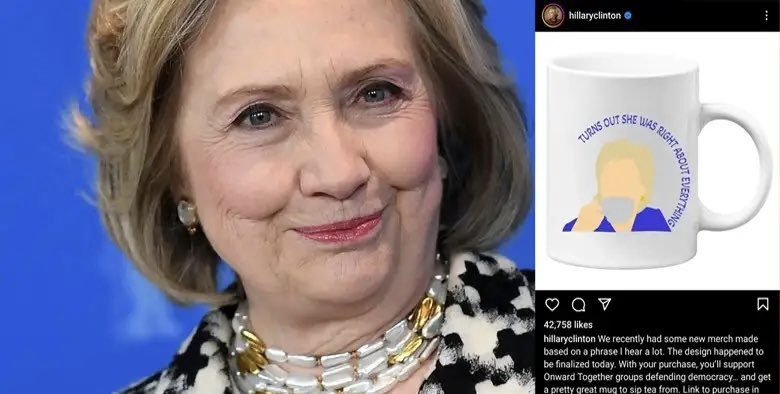 稍早些时候,克林顿在Instagram上发布了一则关于新商品的信息:一个带有她喝咖啡图片的马克杯,上面写着:“结果证明她说的都对。”