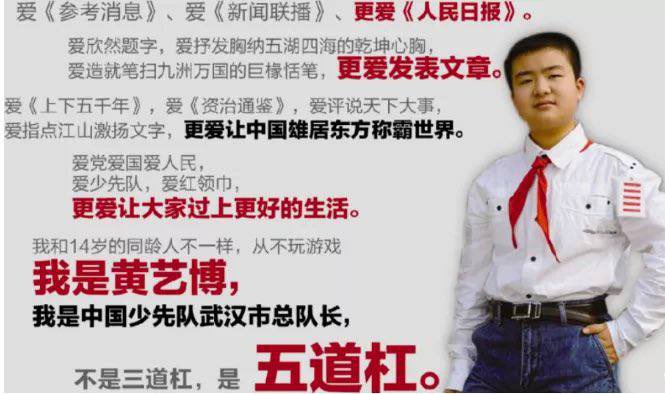 十多年前爆紅的五道槓全國優秀好少年、全國五星雛鷹獎章、湖北省優秀少年黃藝博高考2016年高考才考了477分,連湖北普通二本的分數線都沒夠上,只能讀三本。而當年的「不屑弟」卻考上了武漢當地一所211高校。幾年後,孫童又考上了美國的哈佛大學。網友:難道五道槓不適應重點培養嗎? https://t.co/3YGC11u3ZS