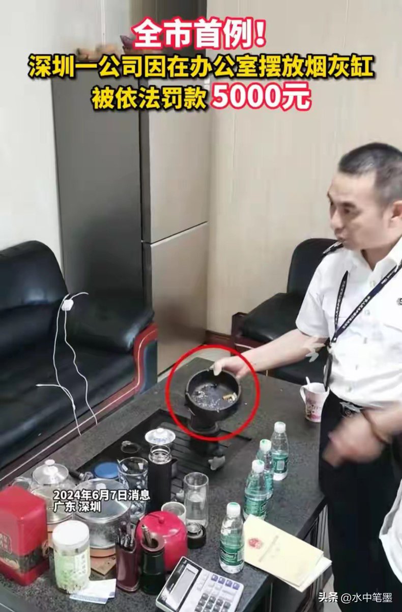 真的离谱!深圳一公司在办公室摆烟灰缸被罚款5000
