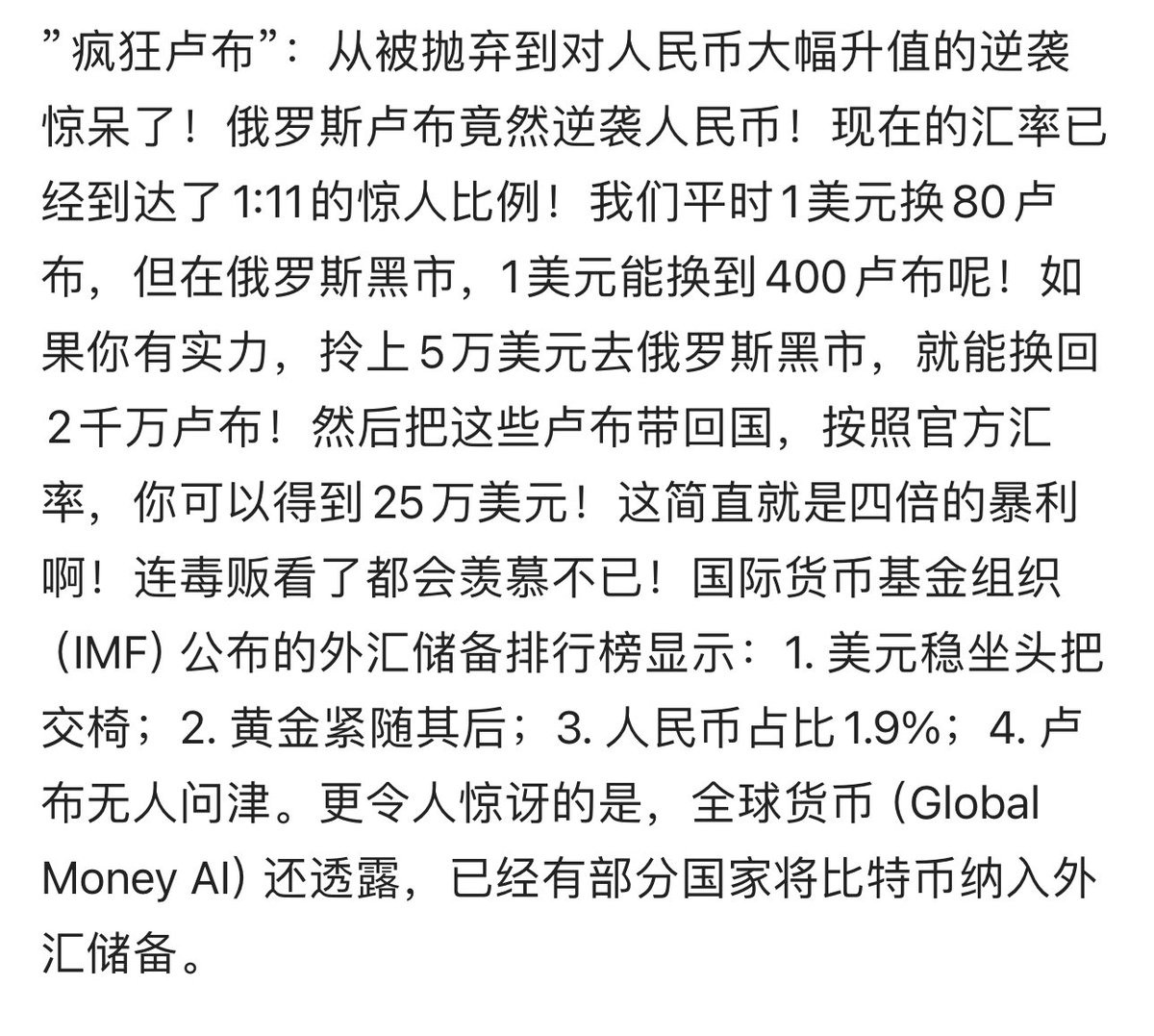 汇率是给跨境买东西用的,不买东西哪里能换那么多现金。但卢布对人民币升值明显把卢布掉汇损失转嫁给人民币了,人民的苦日子还在后面。 https://t.co/BkvWCgiRIt